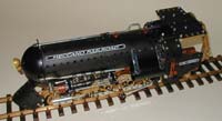 | Nach anfänglichem Zögern - Räder aus Kunststoff, Rauchkammertür eine Kunststoff-Halbkugel - eigenwilles Antriebsgestänge - beginnt man doch mit dem Bauen. Es stellt sich schnell heraus, daß Meccano sehr viel Mühe auf ein einwandfrei und schnell zu bauendes Modell gelegt hat. Kein einziger Stellring ist im Modell verbaut, keine gekonterte Mutter, keine komplizierten Verbindungen. Deshalb ist das Modell auch für unerfahrene und neue Schrauber geeignet! Während das Modell wächst, lernt man die Formen und Eigenheiten lieben. Schließlich stellt man fest, daß die Räder sogar richtig gut aussehen und daß man sie mit Gewinn in so manchem Modell einbauen könnte. Die Lokomotive läuft einwandfrei auf G-Spur-Schienen (z.B. LGB), auch durch Kurven. Die Zugkraft ist nicht sonderlich groß, aber völlig ausreichend, um einen mittleren Zug zu ziehen. Was fehlt und dringend dazu gebaut werden sollte, ist ein ordentlicher Tender. Demnächst wird auf dieser Website eine solche Konstruktion zu sehen sein! Auch könnte man das Antriebsgestänge ohne größeren Aufwand verbessern (es funktioniert übrigens in dieser Version einwandfrei) und sich vielleicht bei der Gelegenheit Gedanken über den fehlenden Schornstein machen. Trotz gewisser Zweifel - es sind nicht gerade wenige Kunststoffteile im Modell verbaut - ist es ein tolles Modell, das eben noch viele Ausbaumöglichkeiten bietet. Ein ganz besonderer Clou sind die flexiblen magnetischen Namensschilder - endlich kann man aus seinem Kühlschrank einen Meccano-Kühlschrank machen... Viel Spaß beim Nachbau! |