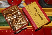 | Der hier vorgestellte Meccano Kasten No. 9 ist leicht gebraucht, etwa 80% der Teile waren nie verschraubt. Insgesamt ist der Zustand als exzellent zu bezeichnen - man beachte, daß mehr als 50 Jahre seit Produktion vergangen sind. |